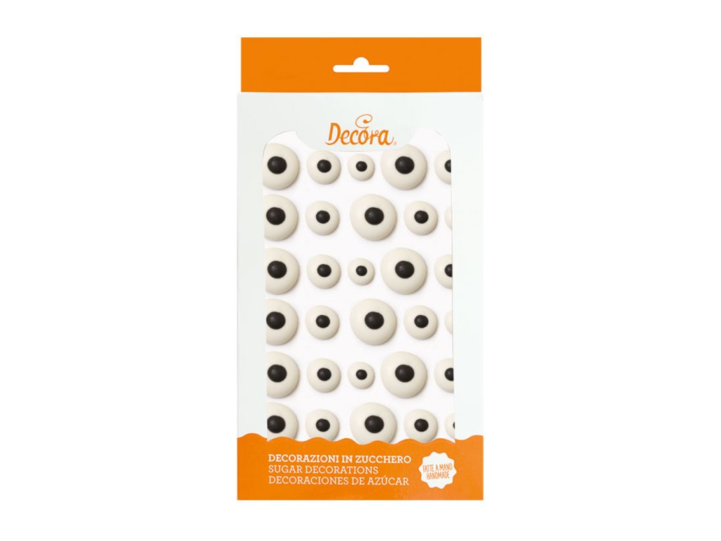 Oči jsou vyrobeny z jemné polevy. Komické oči pro zábavné a kreativní zdobení pečiva, čokoládových pusinek, krémů, dortů, koláčů, zákusků, cupcaků s polevou, muffinů, zákusků nebo zmrzliny. Oči mohou být ozdobeny tak, aby vypadaly tázavě, překvapivě, zvědavě, otravně, zle nebo vtipně | Také pro fondánové nebo dortové figurky vlastní konstrukce. Pro každou příležitost, zvláště k narozeninám dětí. TIP: Na vlhké dezerty nanášejte pouze krátce před podáváním | U pevných dezertů pokládejte krátce před zaschnutím!