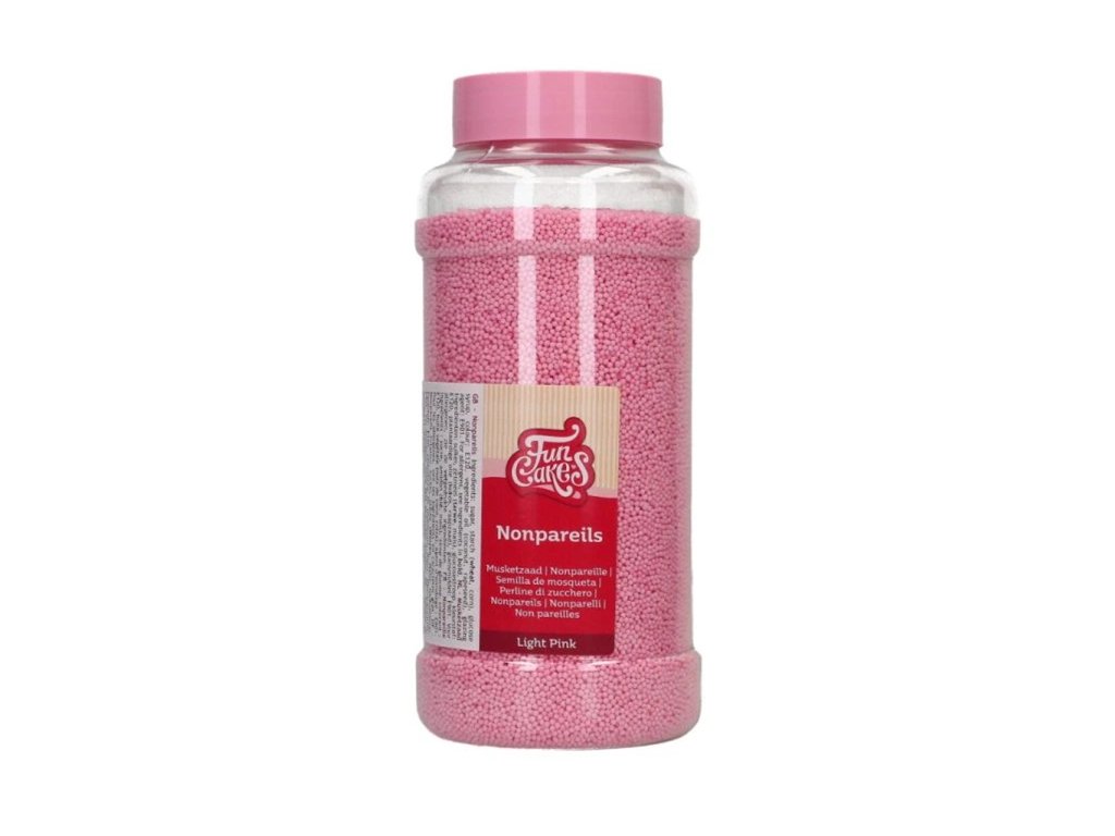 Cukrové perličky FunCakes Nonpareils– růžové, dekorativní cukrové kuličky velikost cca 1–2 mm, balení 800 g, na zdobení dortů, cupcaků, sušenek i cake pops.