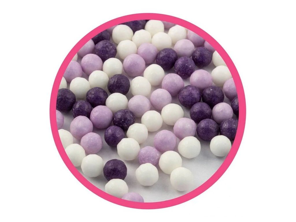 Složení: cukr (min. 97%), kukuřičný škrob, barvivo E122, E133, leštící látka: karnaubský vosk E903, šelak E904, včelí vosk E901. Může obsahovat stopy siřičitanů. Barvivo E122 může nepříznivě ovlivňovat činnost a pozornost dětí.