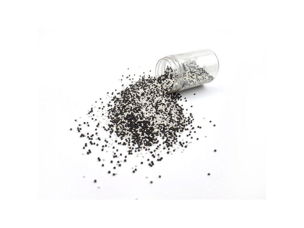 Tyto černé a bílé perličky jsou univerzální cukrová dekorace. Černo-bílé cukrové perličky dodávají eleganci tradičním i inovativním cukrářským výtvorům. Vysoce kvalitní barviva zaručují barevnou stálost. Perličky na zdobení dortů jsou krásným doplňkem hladkého povrchu dortů. Dají se s nimi zdobit i perníčky, drobné cukroví, muffiny nebo dorty. Jedná se o univerzální dekorace, které vám pomohou doladit vaše chutné pečivo. Další obrovskou výhodou perel je jejich snadná aplikace. Stačí je položit na vámi vybraný povrch a je hotovo. Perly se perfektně hodí k cukrové pastě a dalším. Lze je kombinovat s různými krémy. V naší nabídce najdete jemné cukrové perly, které lze bez obav konzumovat i s dezertem. Pokud zdobení nasypete na vláčný krém, vlhkost z něj může posypek změkčit. Ale pozor, pokud bude zdobení na vlhkém krému delší dobu, může se z posypku uvolnit i barvivo a to na povrch krému. Pokud chcete, aby větší části dekorace drželi například na potahovém dortu, můžete tento druh zdobení k dortům lepit polotuhou čokoládou, nebo glazurou na perníčky. s posypky pracujte nejlépe nad miskou, či plechem s okrajem.