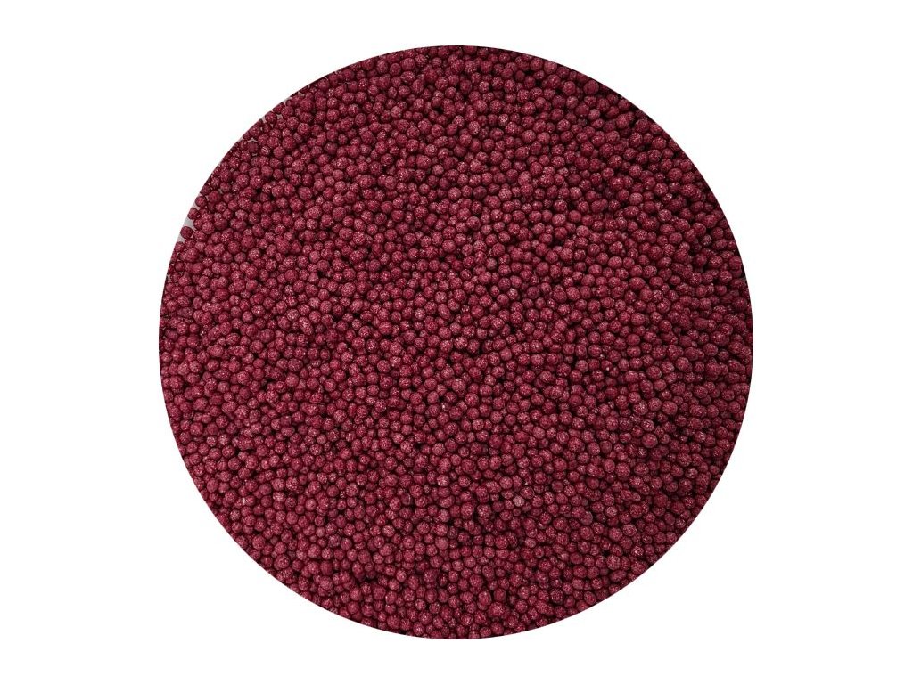 Tyto vínové perličky jsou univerzální cukrová dekorace. Tyto barevné cukrové kuličky dodávají eleganci tradičním i inovativním cukrářským výtvorům. Vysoce kvalitní barviva zaručují barevnou stálost. Perličky na zdobení dortů jsou krásným doplňkem hladkého povrchu dortů. Dají se s nimi zdobit i perníčky, drobné cukroví, muffiny nebo dorty. Jedná se o univerzální dekorace, které vám pomohou doladit vaše chutné pečivo. Další obrovskou výhodou perel je jejich snadná aplikace. Stačí je položit na vámi vybraný povrch a je hotovo. Perly se perfektně hodí k cukrové pastě a dalším. Lze je kombinovat s různými krémy. V naší nabídce najdete jemné cukrové perly, které lze bez obav konzumovat i s dezertem. Pokud zdobení nasypete na vláčný krém, vlhkost z něj může posypek změkčit. Ale pozor, pokud bude zdobení na vlhkém krému delší dobu, může se z posypku uvolnit i barvivo a to na povrch krému. Pokud chcete, aby větší části dekorace drželi například na potahovém dortu, můžete tento druh zdobení k dortům lepit polotuhou čokoládou, nebo glazurou na perníčky. s posypky pracujte nejlépe nad miskou, či plechem s okrajem.