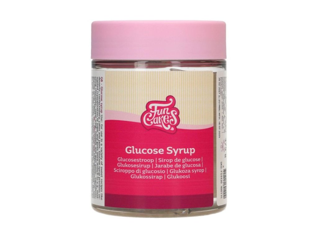 Glukózový sirup od FunCakes je univerzální přísada do cukrářských a pekařských receptů. Skvěle se hodí do dezertů, cukrovinek, dortů či džemů. Využívá se zejména k prevenci nežádoucí krystalizace cukru a zároveň zlepšuje pružnost a tažnost hmot, jako je modelovací čokoláda, královská glazura, fondán nebo gumpasta. Díky tomu jsou výrobky hladší, stabilnější a snadněji se s nimi pracuje. Hustota sirupu odpovídá 46,1°Bè.