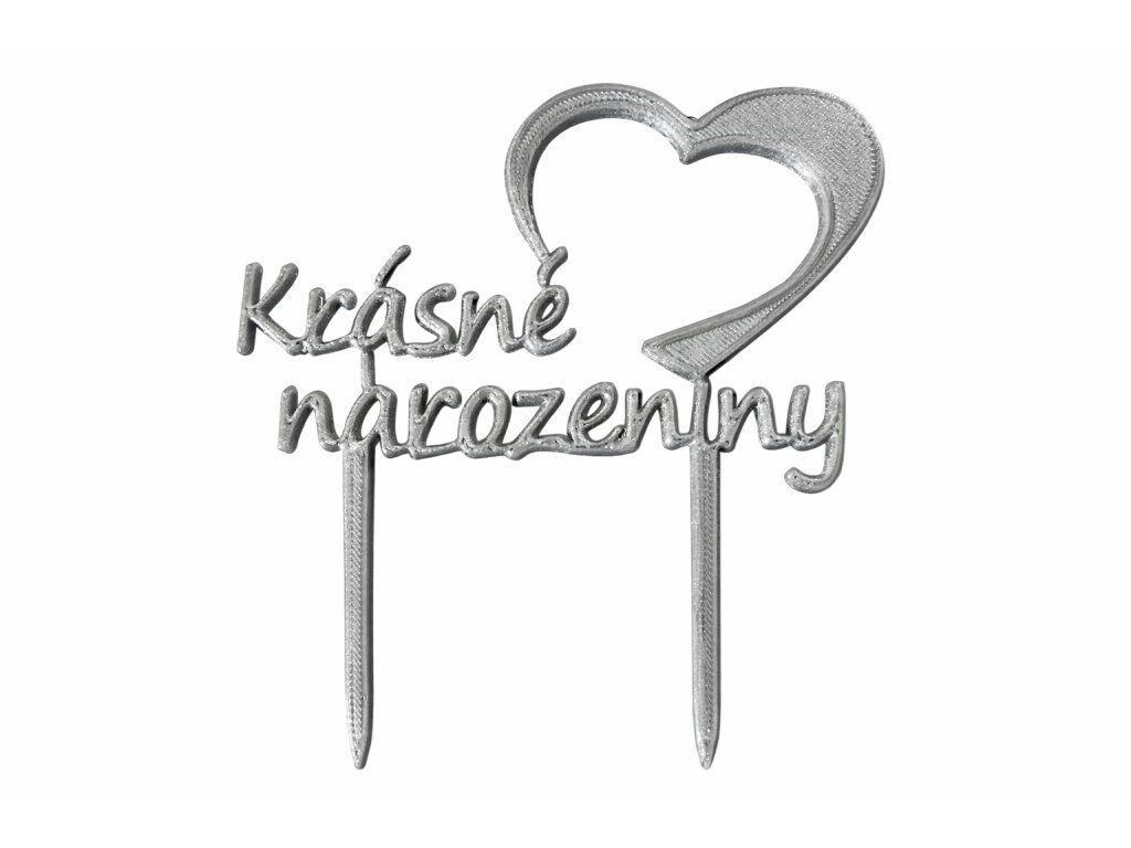 Krásné narozeniny - stříbrná - srdíčko - zápich 3D