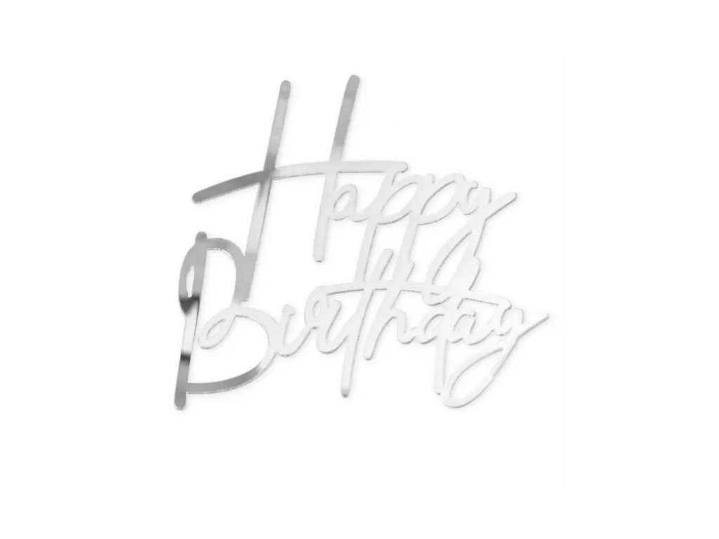 › Zápichy na dorty › Nejedlá dekorace - Happy Birthday - stříbrný - 2