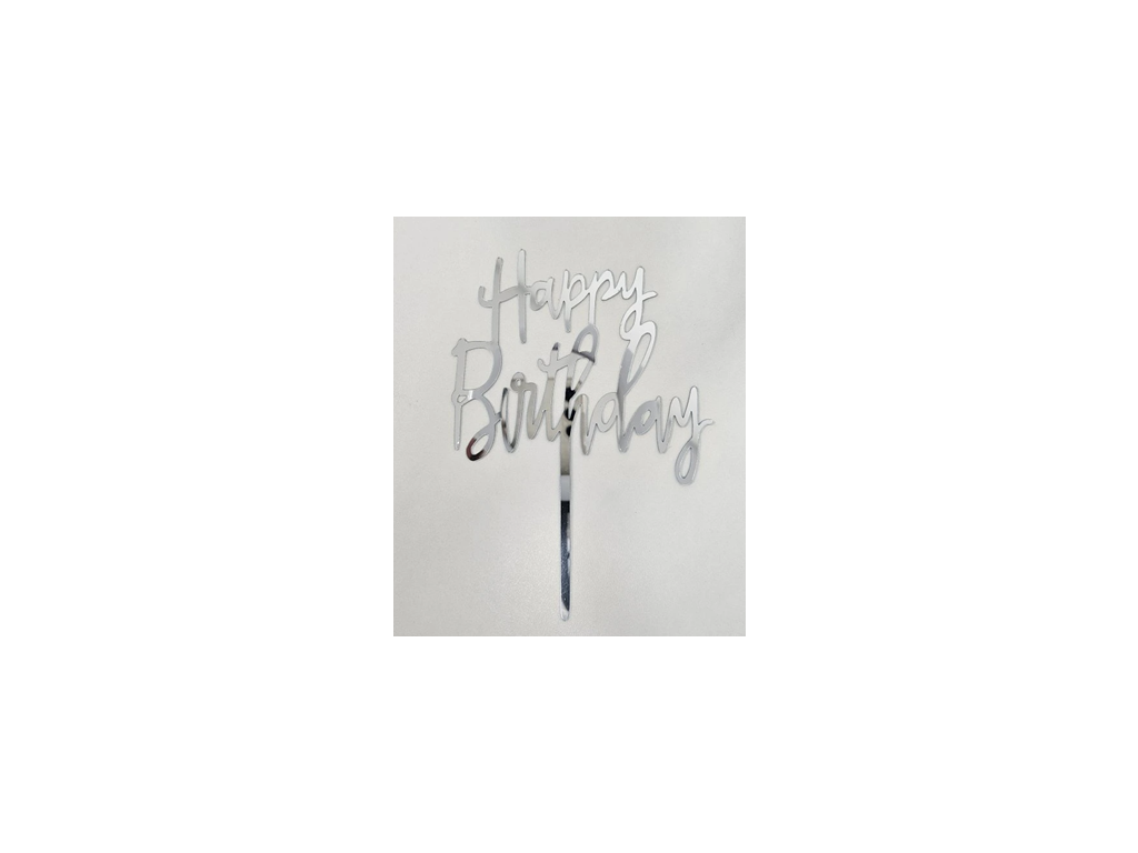 Nejedlá dekorace - Happy Birthday - stříbrný