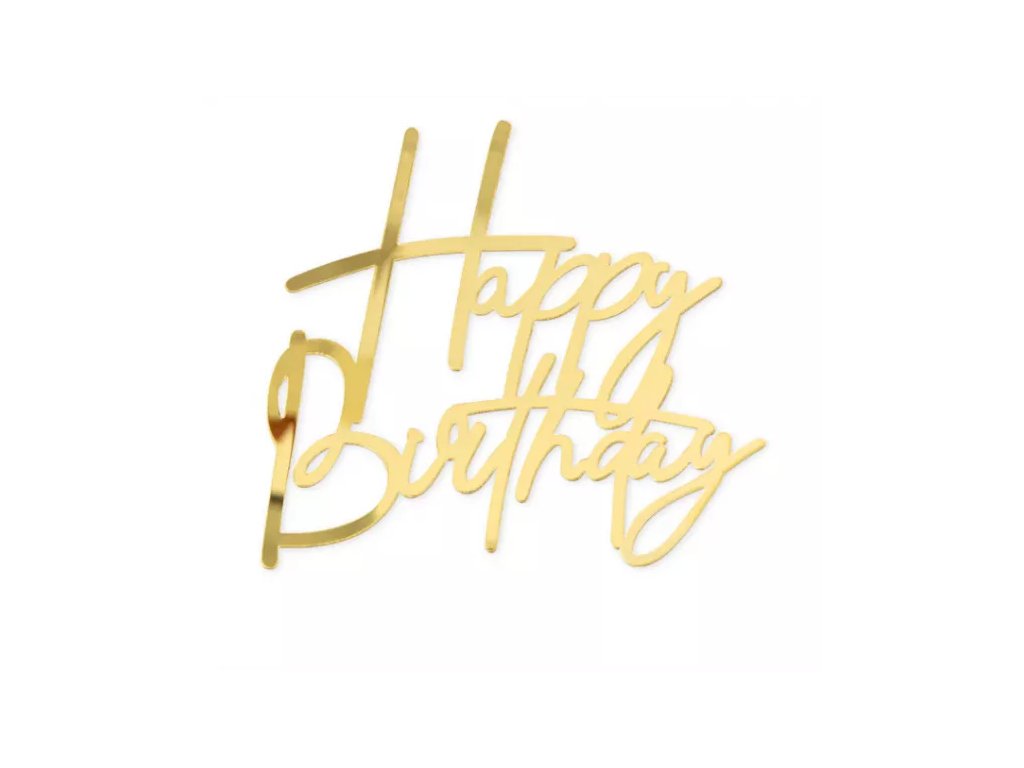 › Zápichy na dorty › Nejedlá dekorace - Happy Birthday - zlatý - 2