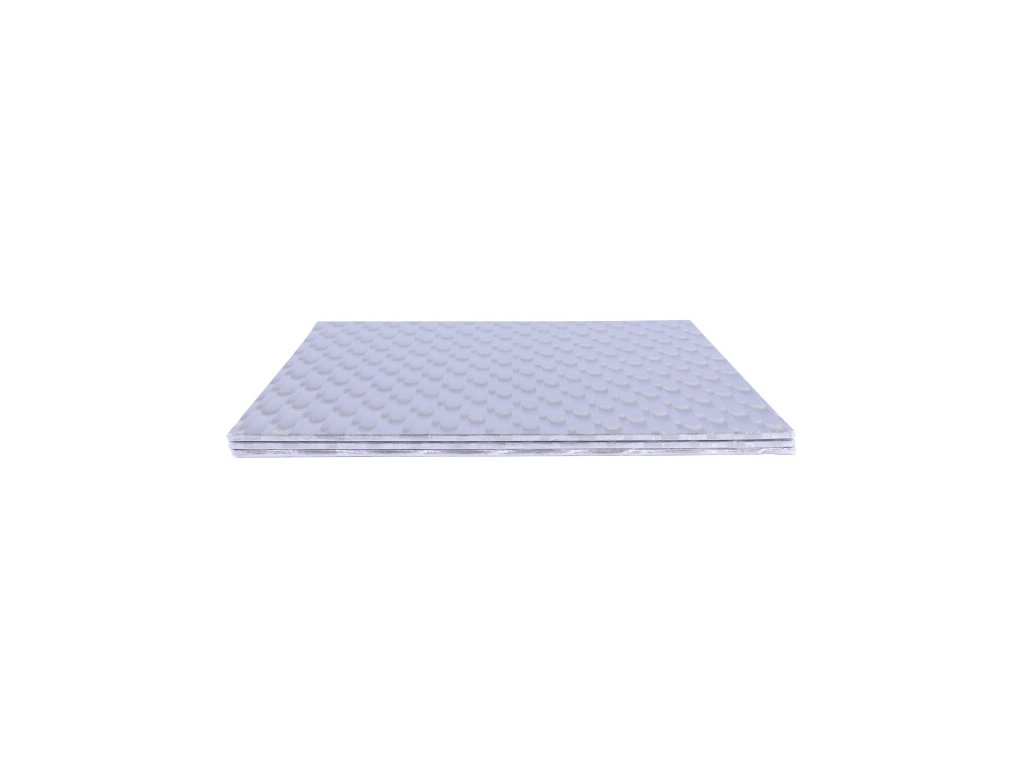 Podložka je vyrobena z kartonu a potažena stříbrnou folií.