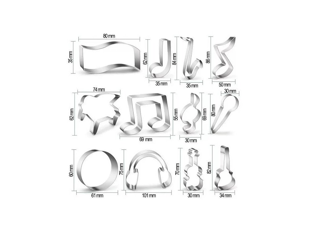 › Vykrajovátka kov, plast › Hudební nástroje 12 ks - kov